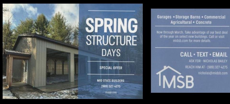 Choosing when and who to build with is a big decision. Whether it’s a custom pole building, concrete project, or commercial construction, Mid State Builders delivers quality you can trust.